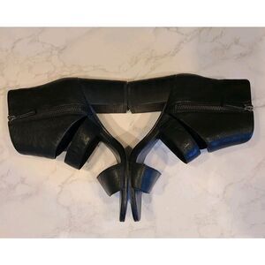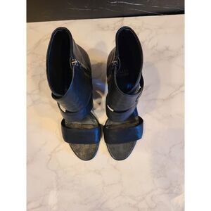 Eileen Fisher Arts Cuff Ankle Heel Sandals Black Leather | 7 Hook & Loop Closure