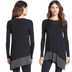 Eileen Fisher Asymmetric Sheer Metallic Tunic Sweater Black/Silver, Parties M