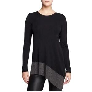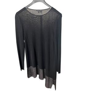 Eileen Fisher Sheer Asymetric Hem Tunic Sweater Black/Metallic Silver, Parties M