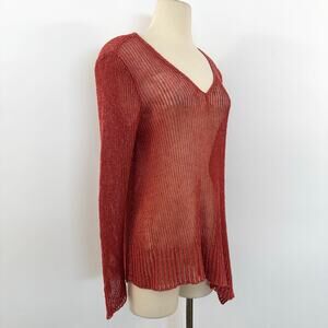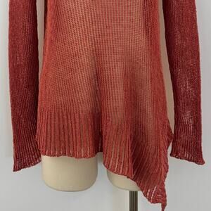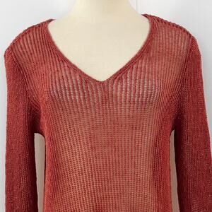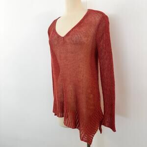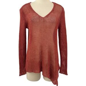 Eileen Fisher Asymmetrical Linen Cotton Sheer Knit Sweater Pullover V-Neck M
