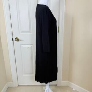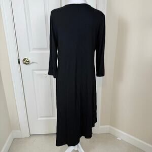 Eileen Fisher Asymmetrical Midi Dress Medium Black V Neck Minimalist