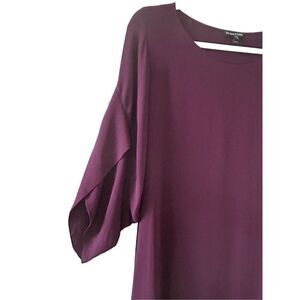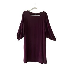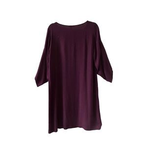 Eileen Fisher Asymmetrical Sleeve Silk Shift Dress Women's Burgundy Size XS