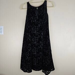 Eileen Fisher BLACK Velvet Vines Burnout Ballet Neck A-line Dress