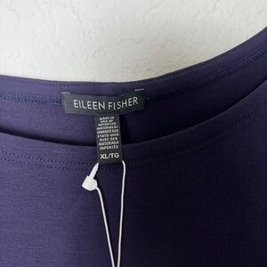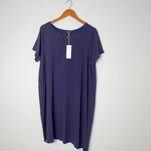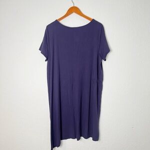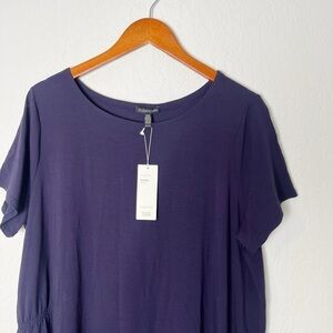 Eileen Fisher Ballet Neck Asymmetric Jersey Dress Purple Ruched Side