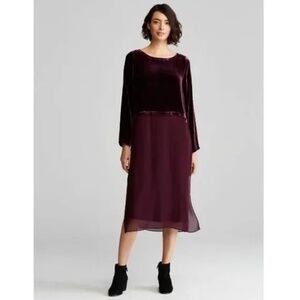 Eileen Fisher Ballet Neck Duster Shift Dress Velvet Silk Duster - No slip