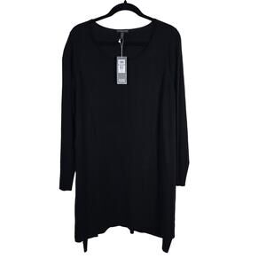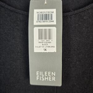 NEW WITH TAGS Eileen Fisher Ballet Neck Layer Dress Women's 1X Black Merino Wool Quiet Luxury Minimalist Lagenlook