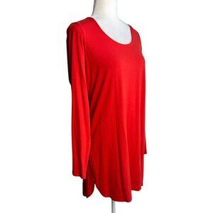 Eileen Fisher Ballet Neck Long Sleeve Tunic Top Mini Dress Red Women's Size S