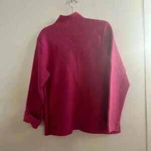 Eileen Fisher marled wool Barbie bright pink cardigan. Size medium. Excellent used condition