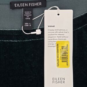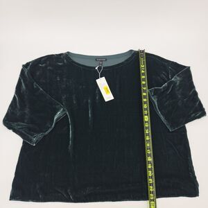 Eileen Fisher Bateau Neck Velvet Boxy Top Blouse Womens Size Large Dark Green Boho Elegant