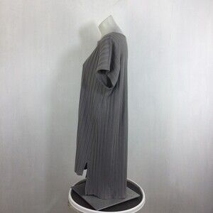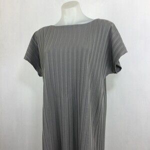 Eileen Fisher Bateau Neck Wide Rib Stretch Tunic Knit Shirt Top Zinc Gray Large