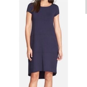 Eileen Fisher Bateau Neckline Jersey Navy Dress Pockets XXS
