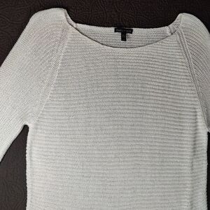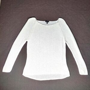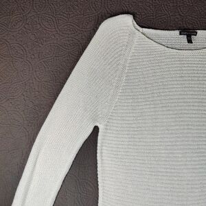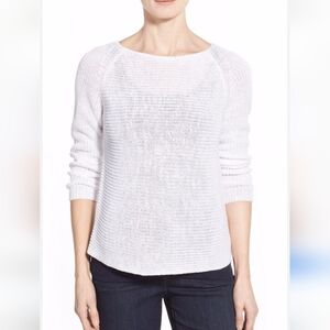Eileen Fisher White Bateau-Neck Organic Linen Rib Knit Box Top Size L Lagenlook