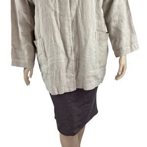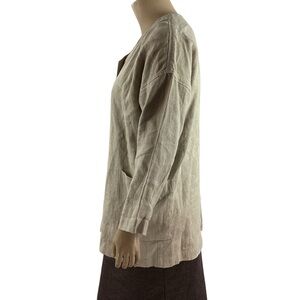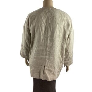 Eileen Fisher Beige Linen V-Neck Hopsack Boxy Jacket Large