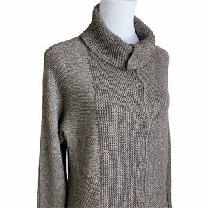 Eileen Fisher Beige Melange Front Pockets High Neck Long Sweater Cardigan M