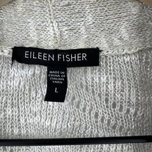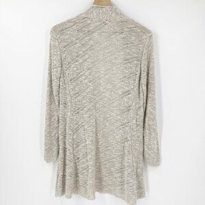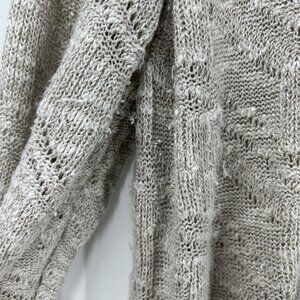 Eileen Fisher Beige Open Knit Longer Length Cardigan Sweater Linen L Beachy Boho