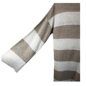 Eileen Fisher Beige Organic Linen Sweater Women’s Neutral Stripe 3/4 Sleeve