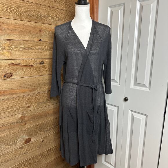 Eileen Fisher Belted Cardigan Sweater Gray Linen Long Sleeve Size Medium