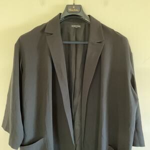 Eileen Fisher Black 100% Silk Open Front Kimono Elongated Jacket Sz XXL Oversized Lagenlook sophisticated