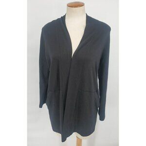 Eileen Fisher Black 92% Tensel Open Cardigan Jacket Pockets Size S/P