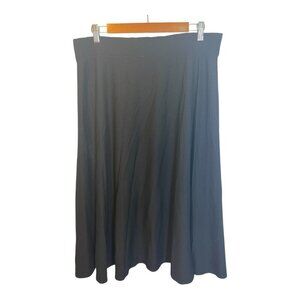Eileen Fisher Black A-Line Pleated Midi Skirt Medium Elastic Waist Travel Work