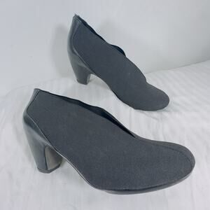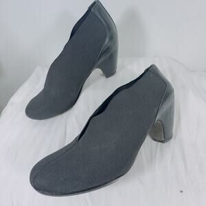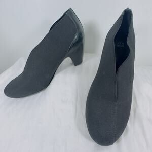 Eileen Fisher Black Ankle Boot Vero Cuoio Lagenlook Slip On Low Block Heel 8.5
