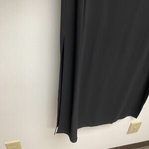 Eileen Fisher Black Boat Neck Silk Long Sleeve Georgette Crepe Dress L $318