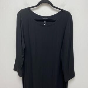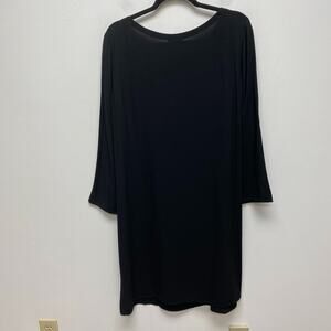 Eileen Fisher Womens Black Boat Neck Silk Long Sleeve Georgette Crepe Dress L