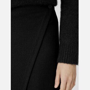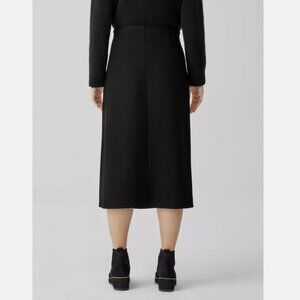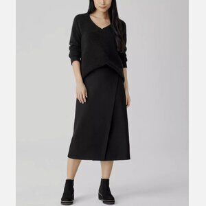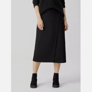 Eileen Fisher Black Boiled Wool Jersey Wrap Midi Skirt