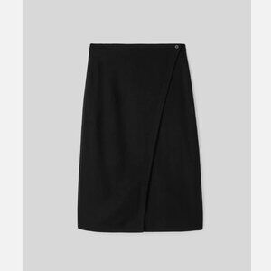 The wrap skirt, a timeless shape in a smooth and drapey knit. With long lines and button closures at the waist. Soft and structured in our Boiled Wool Jersey.