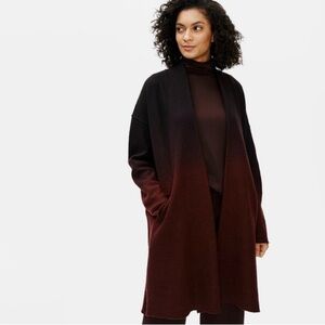 Eileen Fisher Black Brown Ombre Boiled Wool Cardigan Coat Size Large