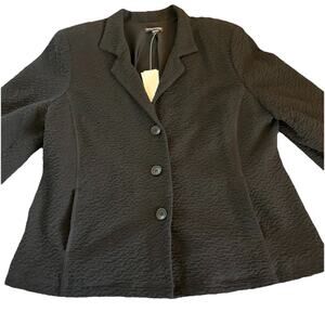 Eileen Fisher Black Convertible CLR Shaped Jacket Rippled Texture 3 Button Large
