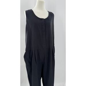 Eileen Fisher Black Cotton Linen Jumpsuit Overalls Romper Pantsuit XL One Piece