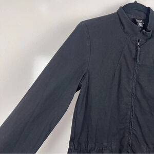 Eileen Fisher Black Cotton Zip Up Cinch Waist Utility Jacket Pockets Women's XS