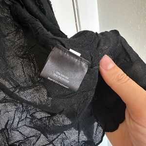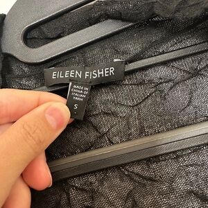 Eileen Fisher Black Crinkled Sheer Short Sleeve Open Cardigan Size S lightweight