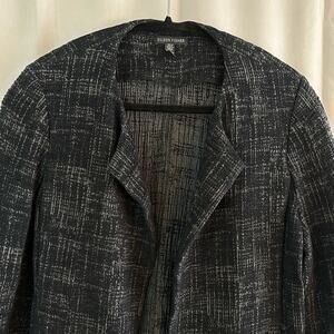 Eileen Fisher Black Crosshatch Open Front Cardigan Jacket Women’s. preowned with some light pilling but in good condition.