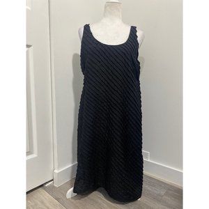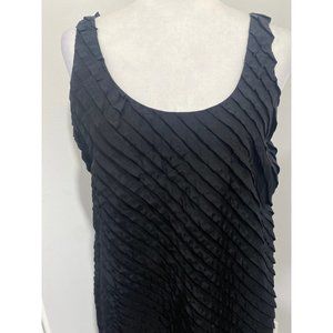 Eileen Fisher Black Diagonal Ruffle Silk Sleeveless Dress Size 8