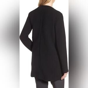 $338 Eileen Fisher Black Geometric Stretch Textured Open Long Jacket Small