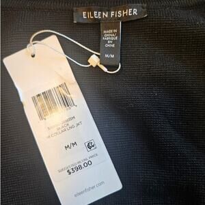 Eileen Fisher Black Hi Collar Silk Blend Long Jacket Medium Open Front $398