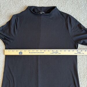 Eileen Fisher Black High Neck Lightweight 1/2 Sleeve Tencel Spandex Blend Pullover Mini Dresss Comfort Women’s Size XS
