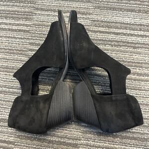 Eileen Fisher Black Iris Nubuck Leather Block Heel Cut-Out Sandal Open Toe 7.5