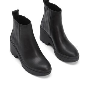 tags: eileenfisher, chelseaboots, wedgebooties, blackleather, minimalist, chunkyheel, fallfashion, sleekstyle, edgyclassic, officecore, quietluxury, normcore, fallfootwear, modernlook, timelessdesign, ankleboots, taylor swift style, fashionboots, comfyheel, capsulewardrobe