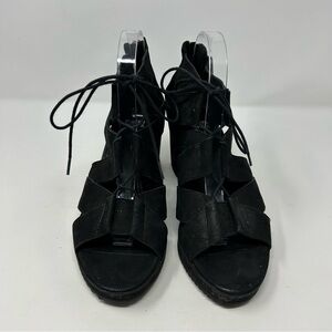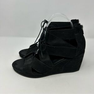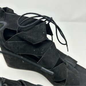 Eileen Fisher Black Lace Up Strappy Wedge Sandals Open Toe Size 9 Back Zipper