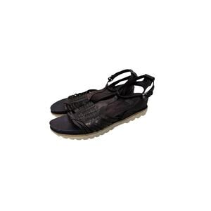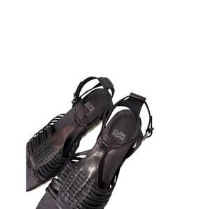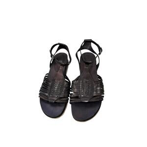 Eileen Fisher Black Leather Braided Boho Minimalist Strappy Sandals Womens 10