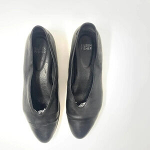 Eileen Fisher Black Leather Pointed Toe Ballet Wedge Flats Size US 7.5