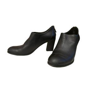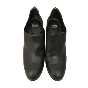 Eileen Fisher Black Leather Quote Boots Size 10 3" Block Heel Minimalist Zipper Back