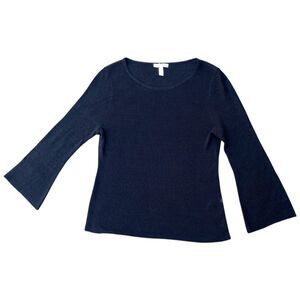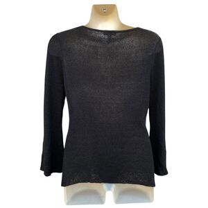Eileen Fisher sz Small S/P Black Linen Blend Pullover Sheer Breathable sweater