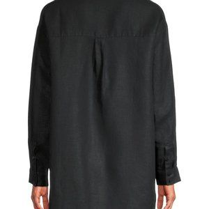 Eileen Fisher | Black Linen Mandarin Collar Shirt
