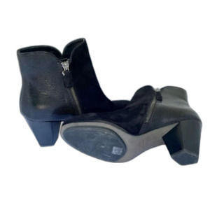 Black Lizard Embossed Leather Suede Zip Ankle Boots