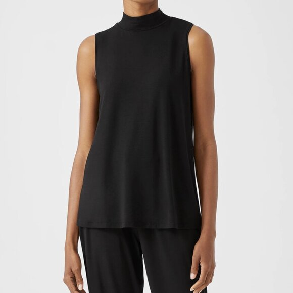 Eileen Fisher Black Long Length Fine Jersey Mock Neck Tank