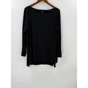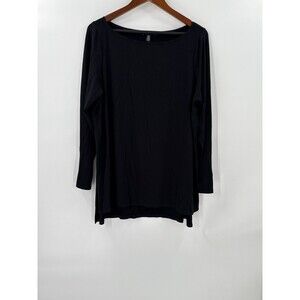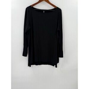 Eileen Fisher Black Long Sleeve Ballet Neck High-Low Hem USA Made Size XLARGE EC